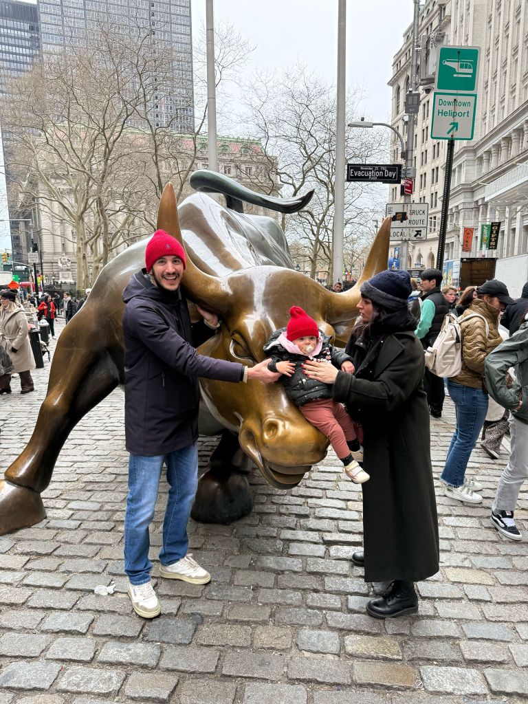 Dopo 8.45 ore di volo preso a Milano Malpensa siamo atterrati all’aeroporto John Fritzgerald Kennedy di New York. Qui ci troviamo indecisi su come arrivare in hotel: prima treno e poi metro con passeggino, 2 bagagli mezzi vuoti da stiva, due zainetti e un trolley per Matilde – dandoci un’aria ancora più spartana – o taxi diretto da ricchi? Abbiamo scelto la strada più genitoriale di comfort e preso un Uber. Con il conducente ci siamo persino scambiati il numero di telefono per farci venire a prendere al ritorno e riportare in aeroporto. Quindi, consiglio gli Uber con cui concordare già il prezzo. Con la Metro non abbiamo avuto una bella esperienza, le stazioni in cui ci siamo serviti erano veramente vecchie e non attrezzate con ascensori per il passeggino, quindi Manu si è tonificato le braccia, invece di pensare sempre alle gambe. Inoltre il passeggino non passava dai tornelli di entrata e si doveva richiedere un “accesso” speciale a una persona autorizzata ad aprire un passaggio. Insomma, per essere una metropoli di queste dimensioni l’abbiamo trovata fintamente all’avanguardia sulla questione Metro e trasporti.